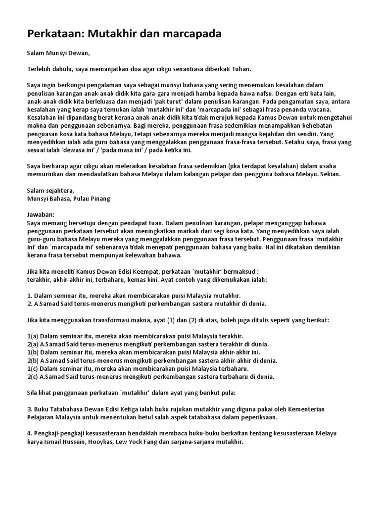 Marcapada Contoh Ayat. Cuba analisis pula contoh ayat yang menggunakan perkataan mutakhir ini di bawah-Sejak mutakhir akhir-akhir ini ini gejala sosial semakin menular dalam kalangan pelajar-. Kita menyadari adanya keterbatasan dalam website ini terutama dalam upaya updatememberikan contoh marcapada maupun penggunaan kata marcapada.
